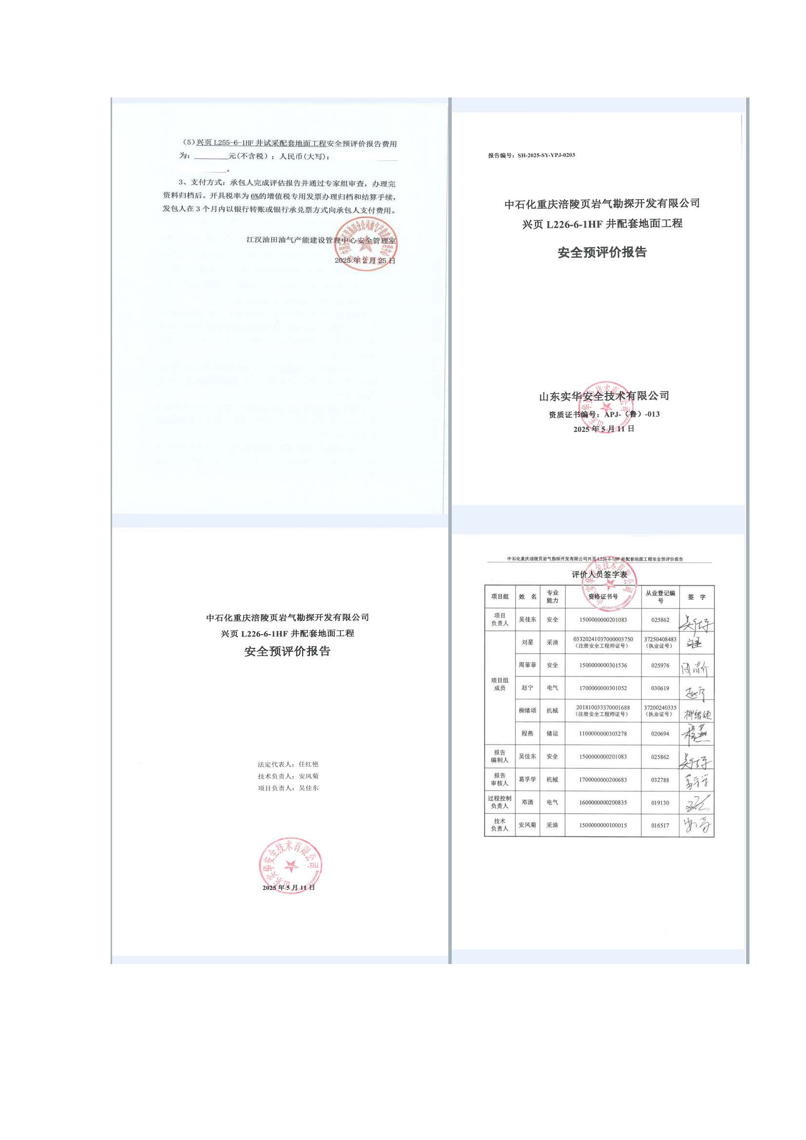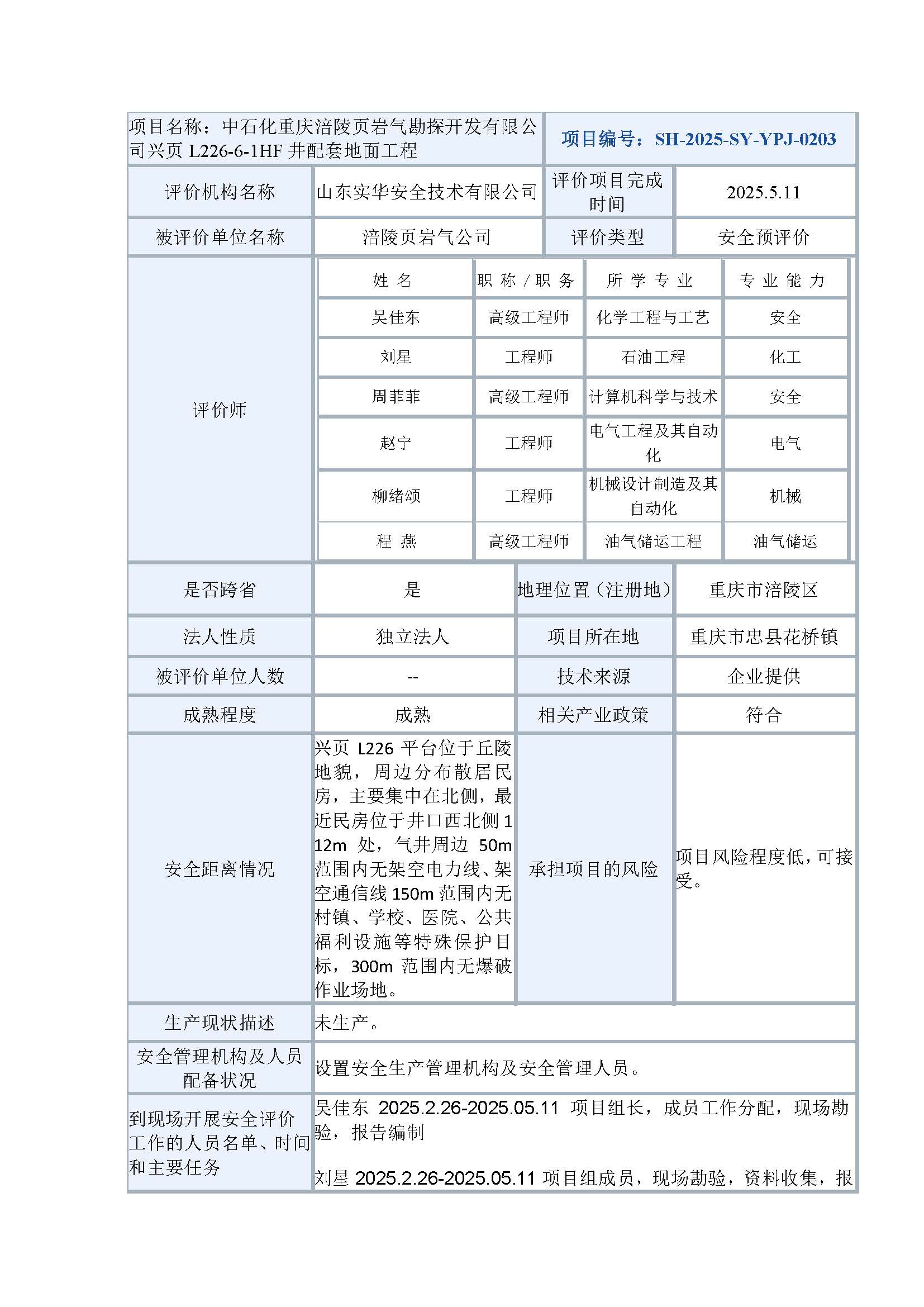 中石化重慶涪陵頁(yè)巖氣勘探開發(fā)有限公司興頁(yè)L226-6-1HF井配套地面工程安全預(yù)評(píng)價(jià)
