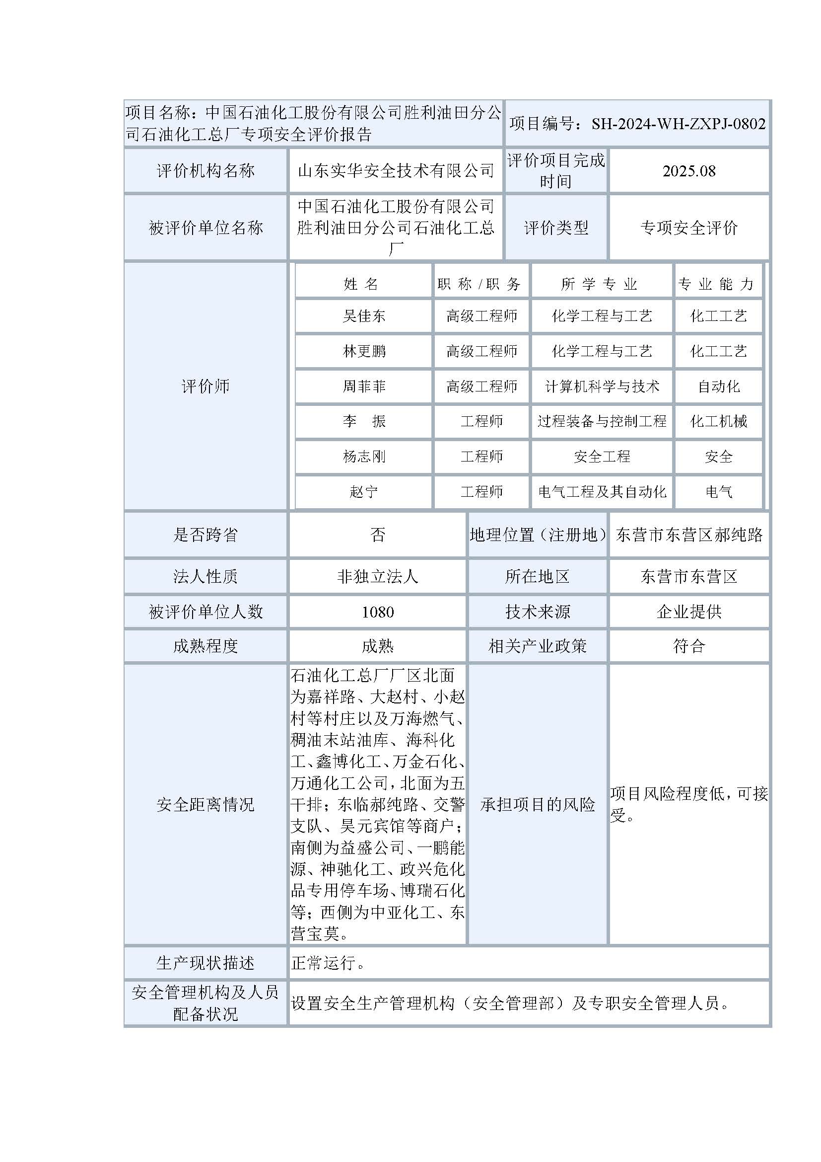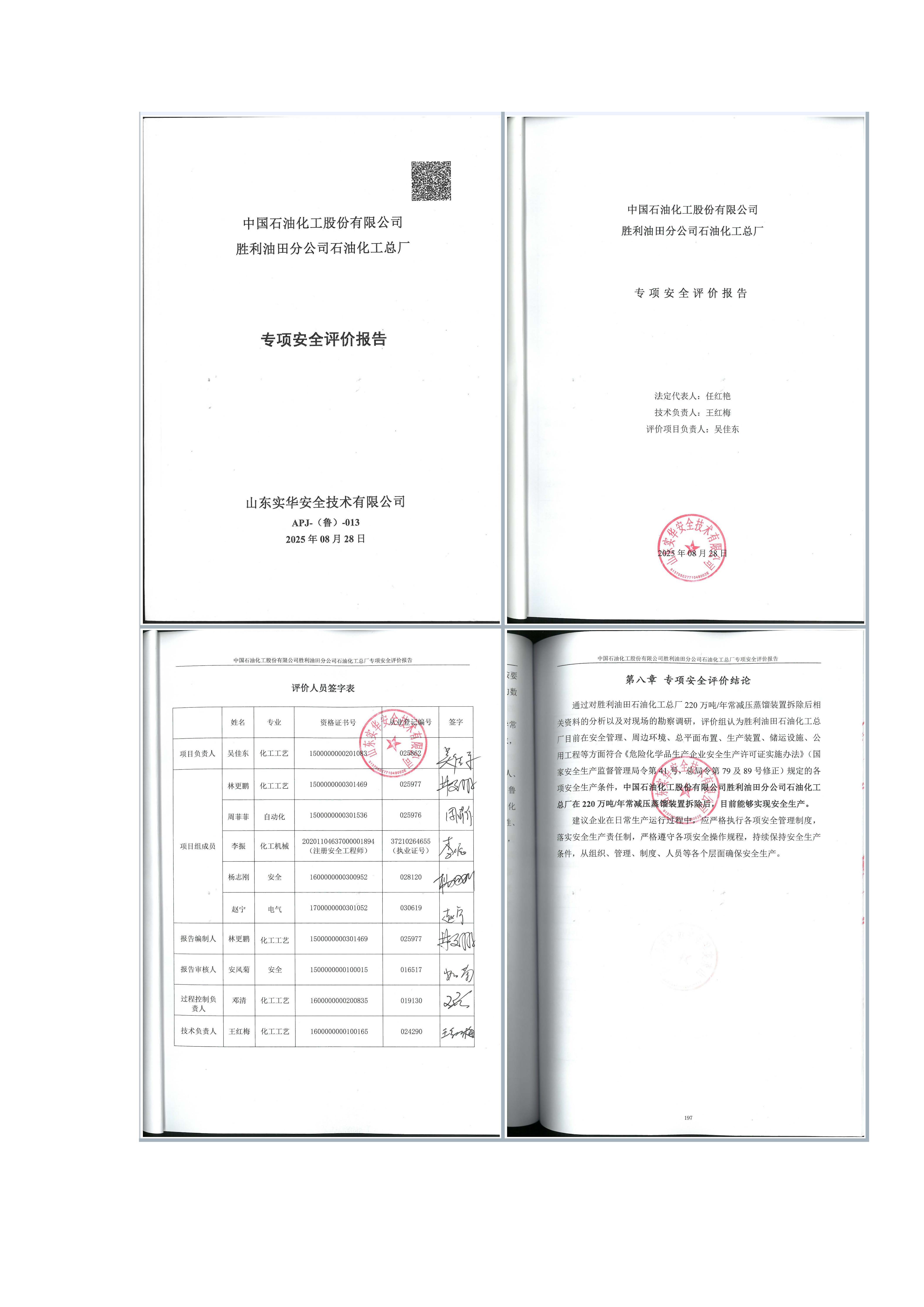中國石油化工股份有限公司勝利油田分公司石油化工總廠專項安全評價報告
