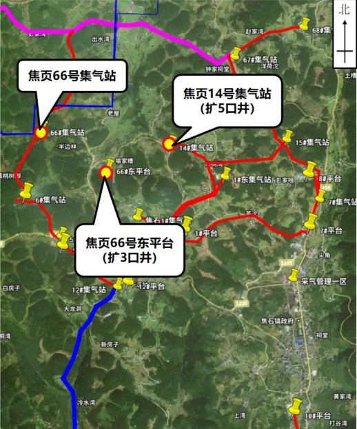 焦頁14號平臺新建井口距離東側(cè)最近的散居民房約258m,與東側(cè)架空電力線路約115m,與南側(cè)架空電力線路約81m,與西南側(cè)公路約55m。焦頁66號東平臺新建井口距離東北側(cè)最近的散居民房約99m,與西北側(cè)散居民房約114m,與北側(cè)公路約96m,與南側(cè)架空電力線路約80m。 |