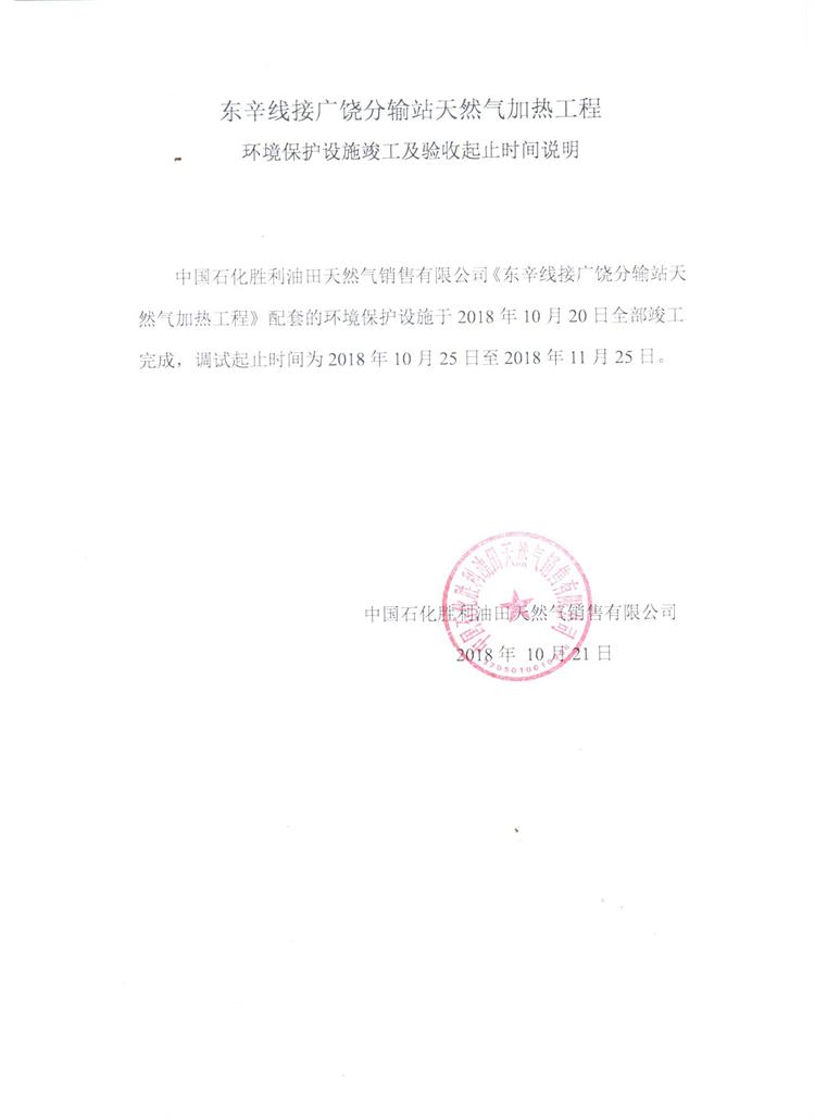 東辛線接廣饒分輸站天然氣加熱工程環(huán)境保護(hù)設(shè)施竣工及驗(yàn)收起止時(shí)間說(shuō)明